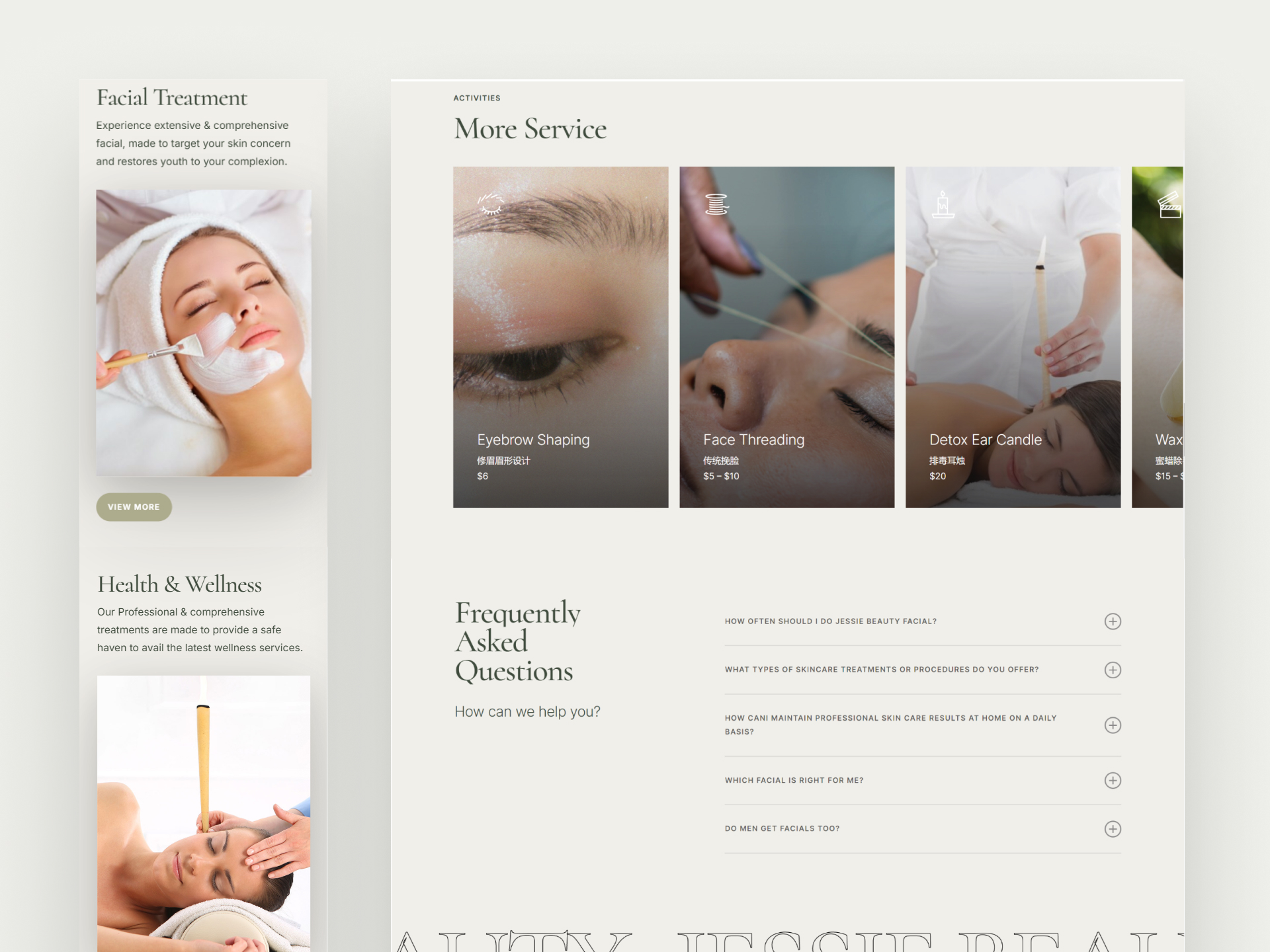 Service Complexity: Organizing a diverse range of professional treatments and “complete facial packages” into a menu that is easy to browse but detailed enough to inform.